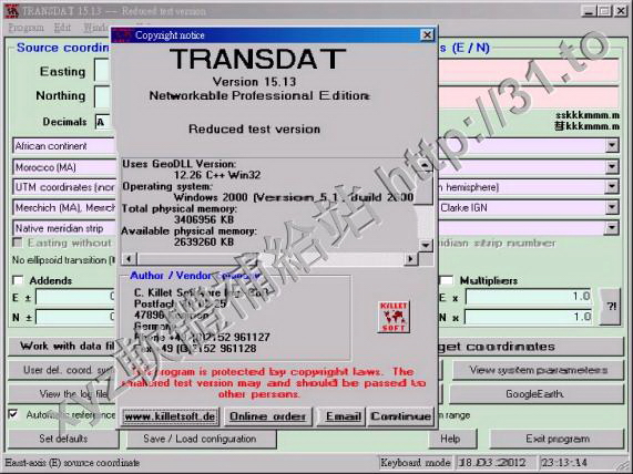 • Killetsoft TRANSDAT v17.22 英文正式版(地理坐標轉換軟體)