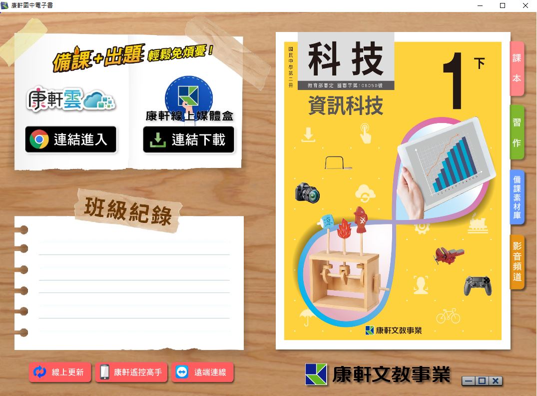 108學年下學期 國中 康軒版 資訊科技電子書 1年級(含課本、習作含解答)教學光碟DVD版