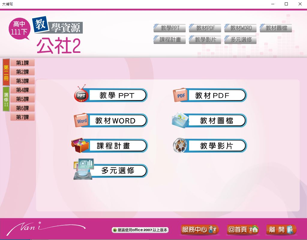 111學年下學期 高中大補帖 南一版 公民與社會科(二、選修II) 教學光碟