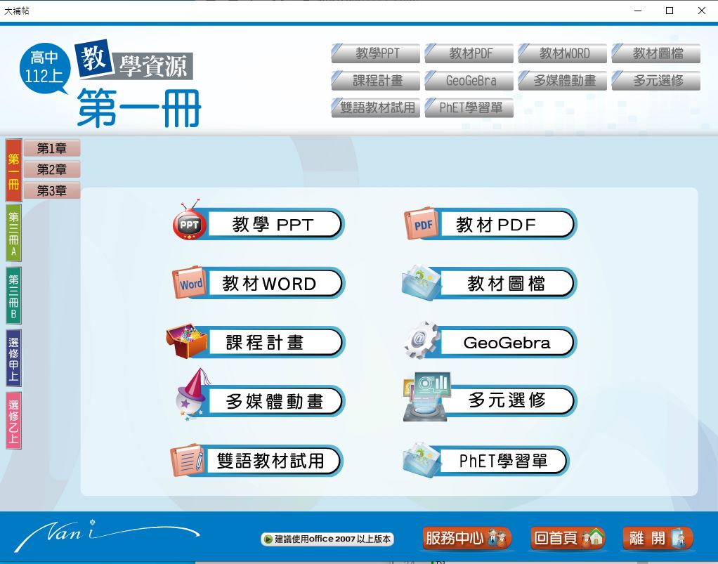 版 數學科(一、三A、三B、選修甲上、選修乙上) 教學光碟