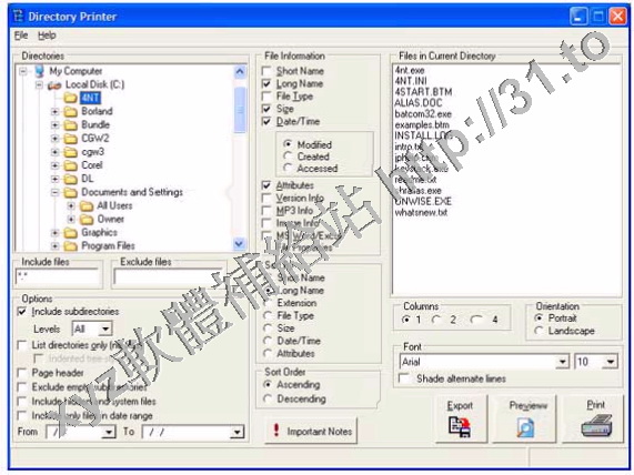 一套可將硬碟中的資料夾及檔案名稱列印出來的工具,它除可列印檔案名外亦可選項的