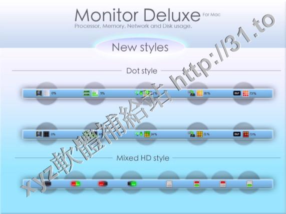 Monitor Deluxe v1.3 MacOSX 英文正式版(顯示CPU,內存,網絡和磁盤使用情況的軟體)