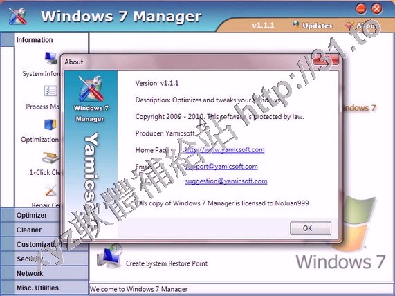 • Yamicsoft Windows 7 Manager v1.1.5 英文正式版(Windows7優化和設置軟體)