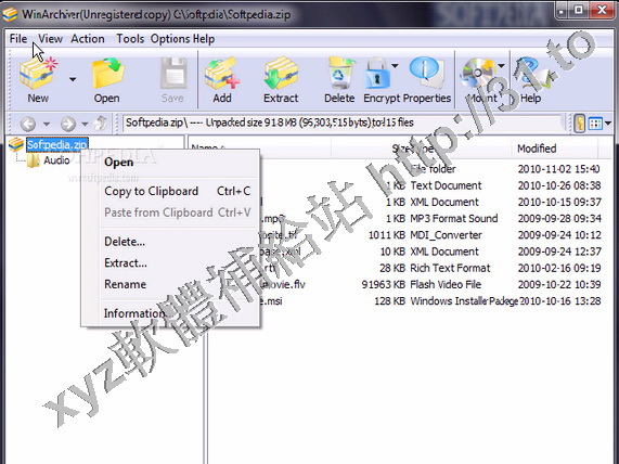 打開,解壓縮zip,rar,7z,和其它格式的壓縮文件。WinArchiver支援所有常見的壓縮文件以